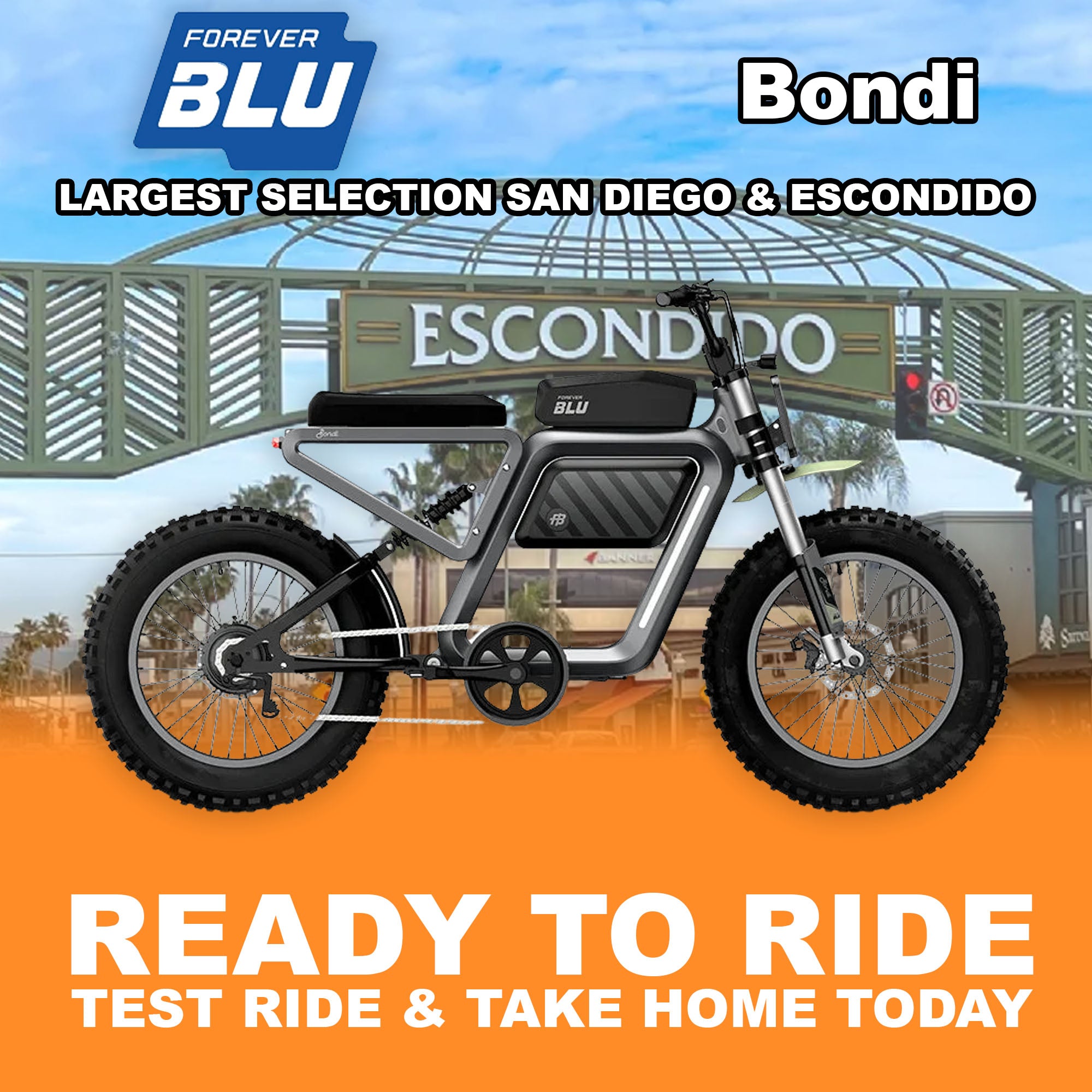 ForeverBlu Bondi Electric Bike Assembled & Ready to Ride In Escondido Assembled & Ready to Ride Forever Blu stocking dealer Forever Blu warranty & support Take home same day The eJOE Bondi...