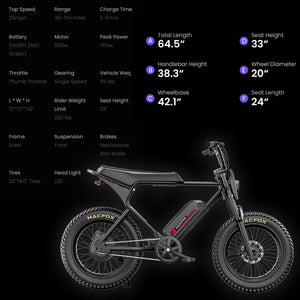 MACFOX X1S Commuter Electric e - Moto Style eBike - Step Over 500 w Electric Mini Fat Tire eBike - Moto Style Bike - Macfox - X1Sdual - eBike - Black - Box eBike Super Shop
