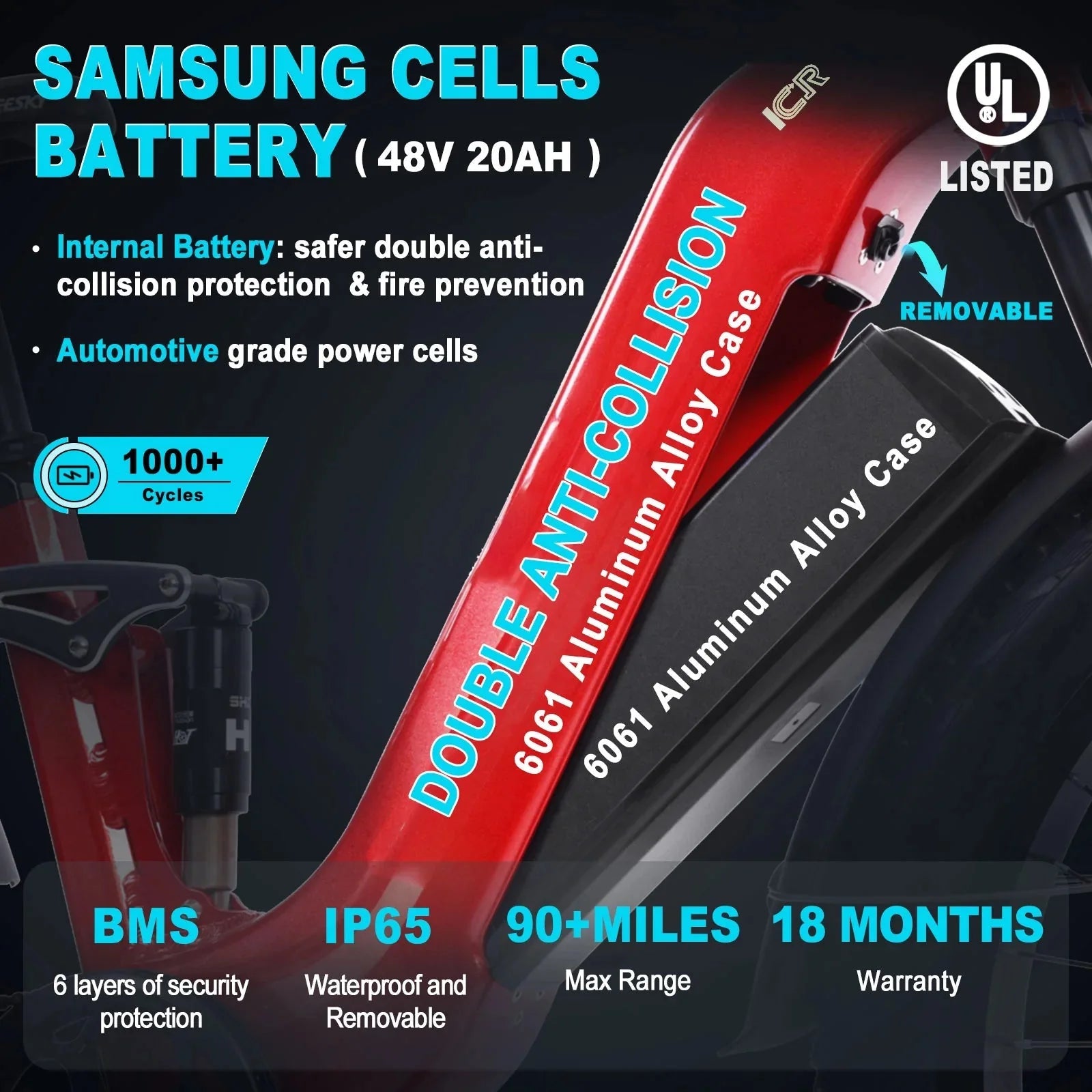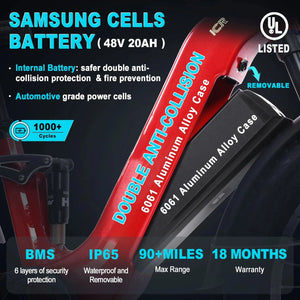 - 48V 20Ah Samsung Battery: Support Long Range Riding.