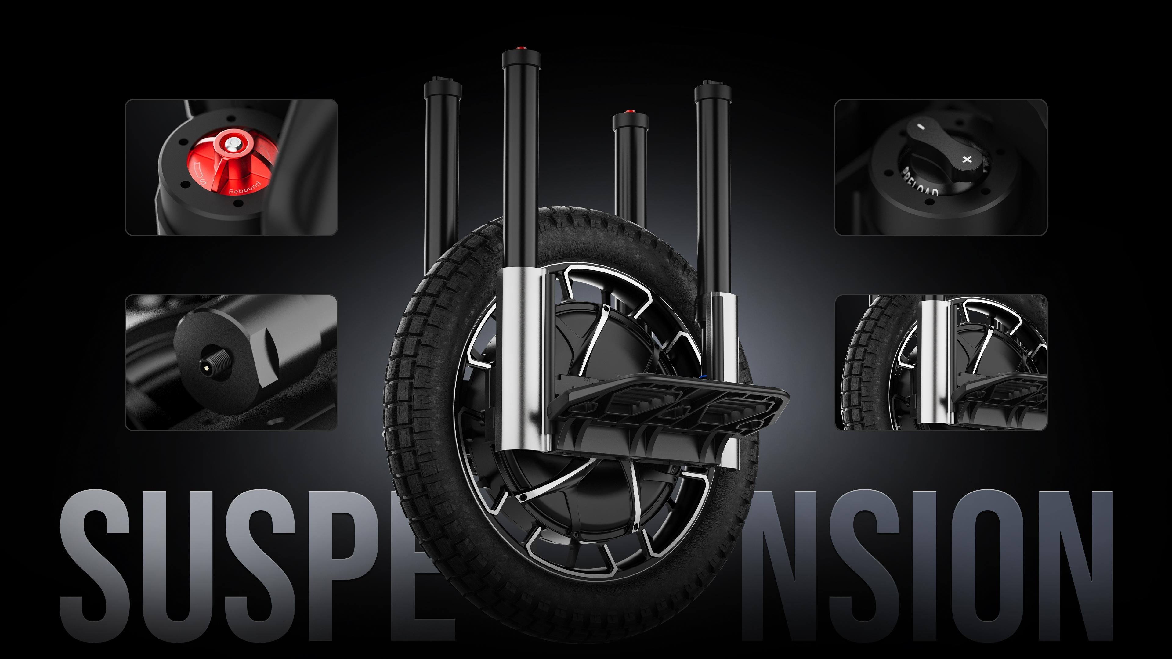 - Suspension System: Features a customized four-shock absorber system by DNM, with adjustable damping and preload for different rider weights.